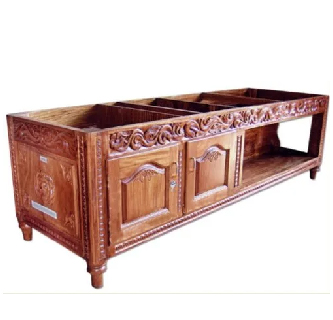 Walnut Finish Wooden Dhroni On Open Shelf Table